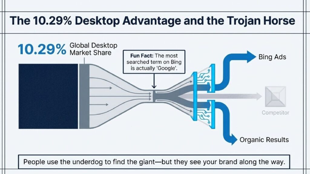 While Google dominates mobile, Microsoft Bing owns a significant slice of the desktop market, holding nearly 10.29% of global desktop searches. Beyond being just a stat, it’s a demographic goldmine.