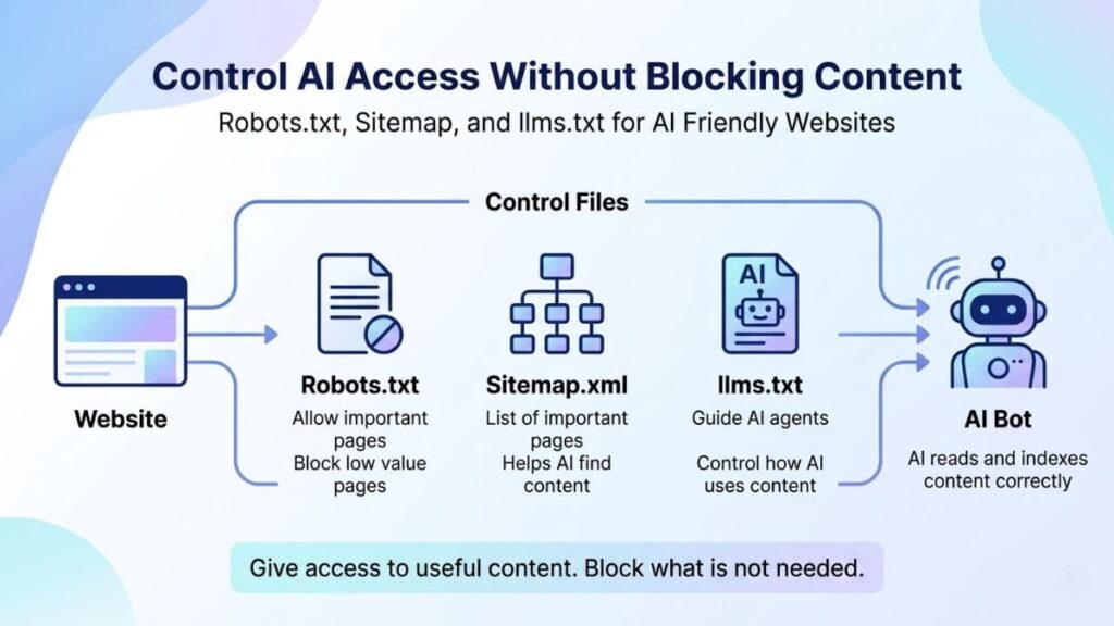 Robots.txt, Sitemap, and llms.txt: Control Without Blocking