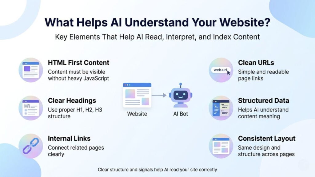 What website elements determine whether AI agents can properly read, interpret, and index my content?